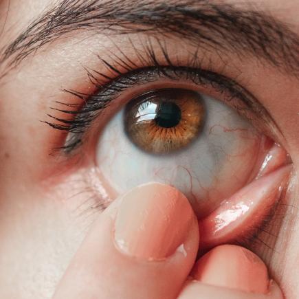 4. Sujéta el párpado y coloca el lente de contacto.